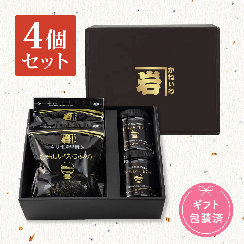 計4個入り ・美味しい味のり 2個 ・国産原料にこだわったもみのり 2個 |