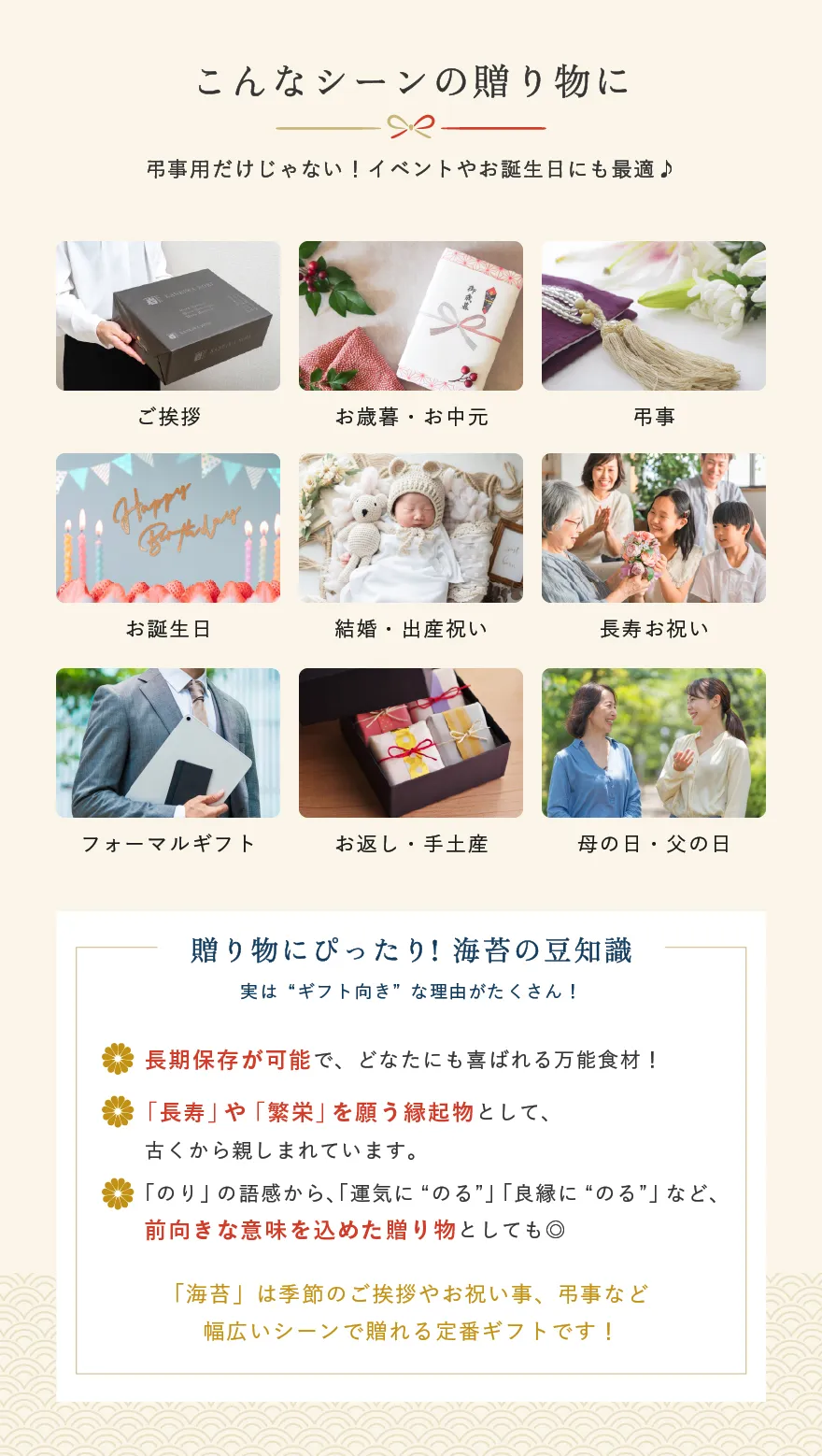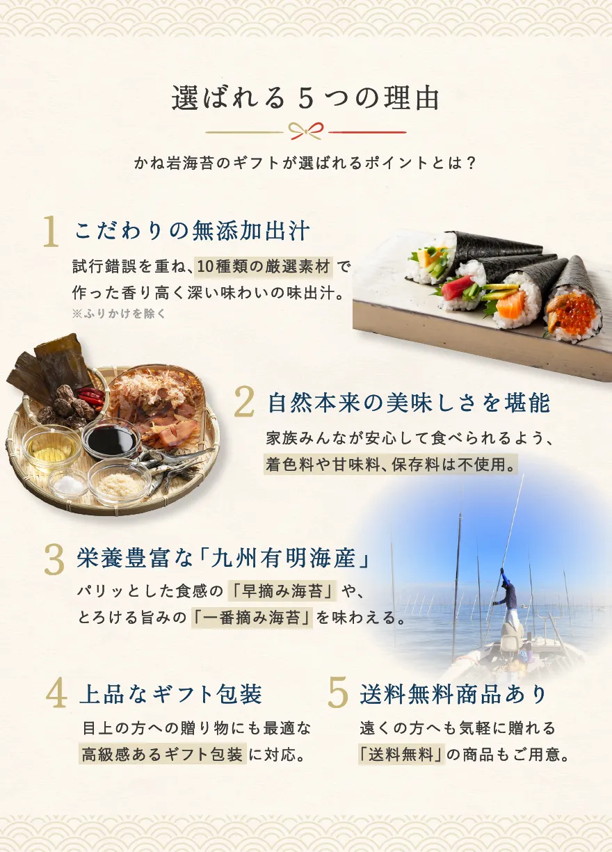 豊かな海の恵みを丁寧に仕上げた海苔の贈り物は、
